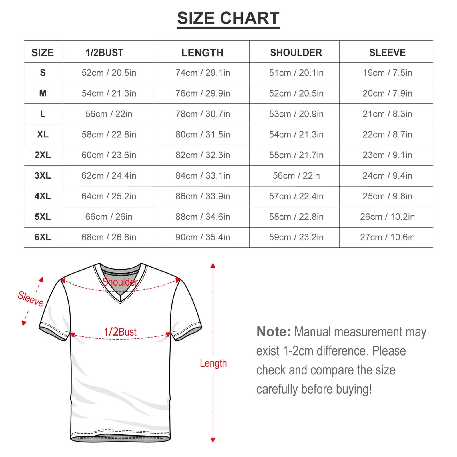 | Taille | 1/2 Tour de poitrine (cm) | Longueur (cm) | Largeur d’épaule (cm) | La longueur des manches (cm) |