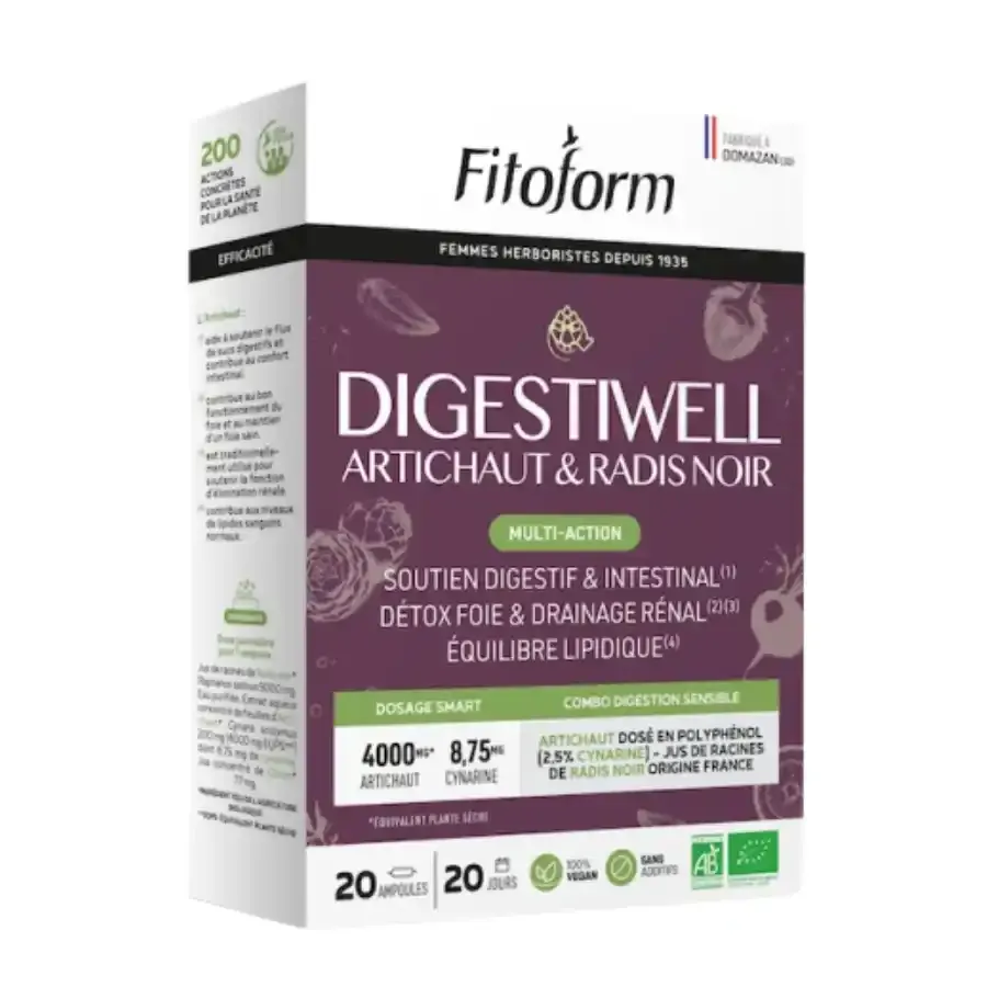 Favorisez une digestion saine et soutenez votre foie avec le complexe Artichaut Français Bio de Fitoform, une formule concentrée qui allie les bienfaits de l’artichaut et du radis noir dans des ampoules pratiques et faciles à utiliser.