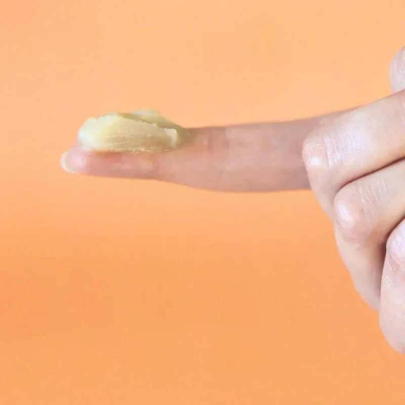 1. Prélevez une petite noisette de baume et réchauffez-la entre les mains.