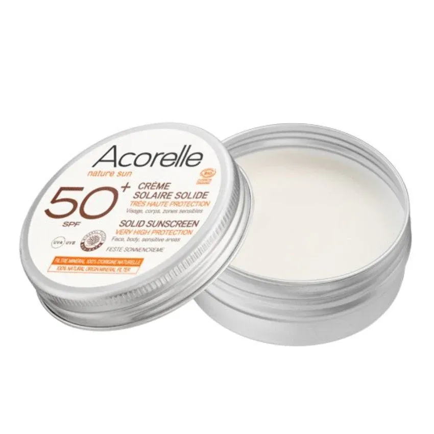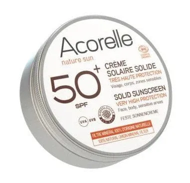 La formule de la Crème Solaire Solide SPF 50+ Bio – Acorelle est composée d’ingrédients naturels et biologiques sélectionnés pour leurs qualités exceptionnelles.