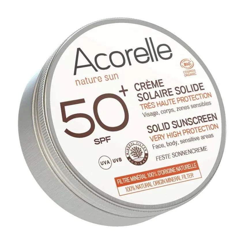 La Crème Solaire Solide SPF 50+ Bio de la marque Acorelle est spécifiquement formulée pour offrir une protection optimale contre les UVA et UVB tout en prenant soin de votre peau. Son format solide de 30 grammes est idéal pour les voyages et les sorties en plein air. Grâce à sa formule bio, elle préserve non seulement votre peau mais aussi l’environnement marin.