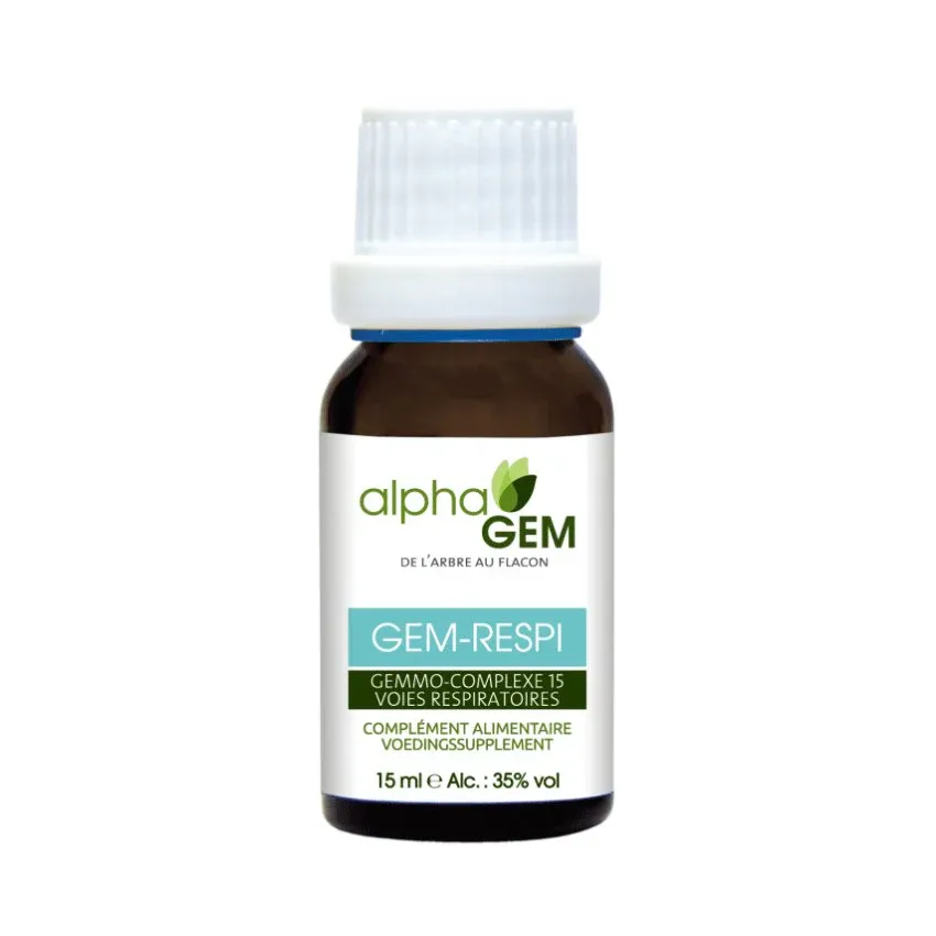 Le Gem-respi 15 Bio en format 15 ml d’Alphagem est un complexe de gemmothérapie spécialement formulé pour favoriser une respiration fluide et confortable. Grâce à l’association synergique de plusieurs extraits de bourgeons et de jeunes pousses, ce produit aide à dégager les voies respiratoires et à renforcer le système immunitaire face aux agressions saisonnières.