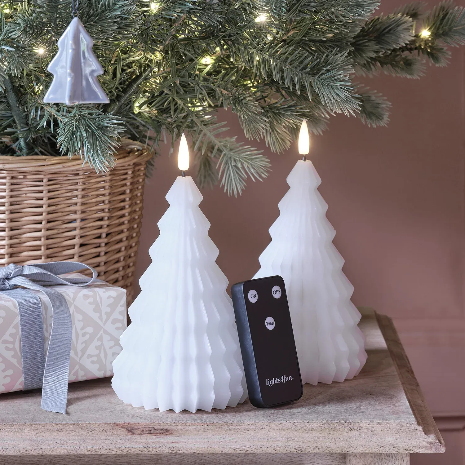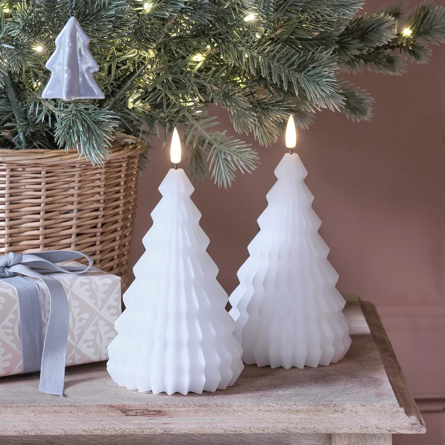Faites briller votre intérieur pour les fêtes de fin d’année avec ce lot de deux bougies TruGlow® en forme de sapin blanc. Mesurant 15 cm de hauteur et 10 cm de diamètre, ces bougies sont un ajout élégant à toute décoration saisonnière. Fabriquées à partir de véritable cire blanche coulée à la main, ces bougies captivent par leur silhouette de sapin blanc, ajoutant une touche de charme naturel à votre espace. Chaque bougie est équipée d’une flamme vacillante à LED, restant froide au toucher pour une tranquillité d’esprit totale. Disposez-les avec grâce sur votre manteau de cheminée, sur vos tables d’appoint ou même en centre de table pour diffuser une lueur chaleureuse et accueillante. Insérez simplement 2 piles AA dans la base de chaque bougie et choisissez la fonction de minuterie optionnelle de 6 heures pour une lueur automatique à la même heure chaque soir.