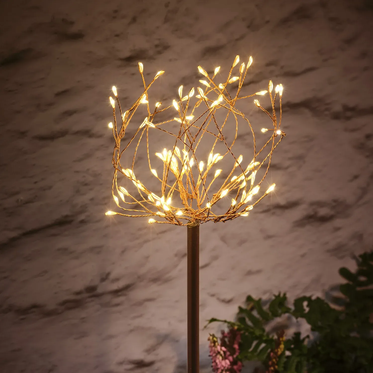 Illuminez votre jardin avec ces balises inspirées des fleurs d’allium ou ail d’ornement. Chaque ensemble comprend trois tiges ornées de fleurs lumineuses dotées de micro LED blanc chaud. Les balises sont reliées par un câble couleur cuivre de 1 mètre entre elles, ajoutant une note discrète et raffinée. Faciles à planter grâce à leurs piquets, elles créent une douce ambiance lumineuse idéale pour vos soirées estivales. Rechargez le panneau solaire au soleil ou via USB et choisissez parmi plusieurs effets lumineux. Une fonction minuterie de 6 heures permet un éclairage automatique pour une touche magique et élégante dans votre extérieur.