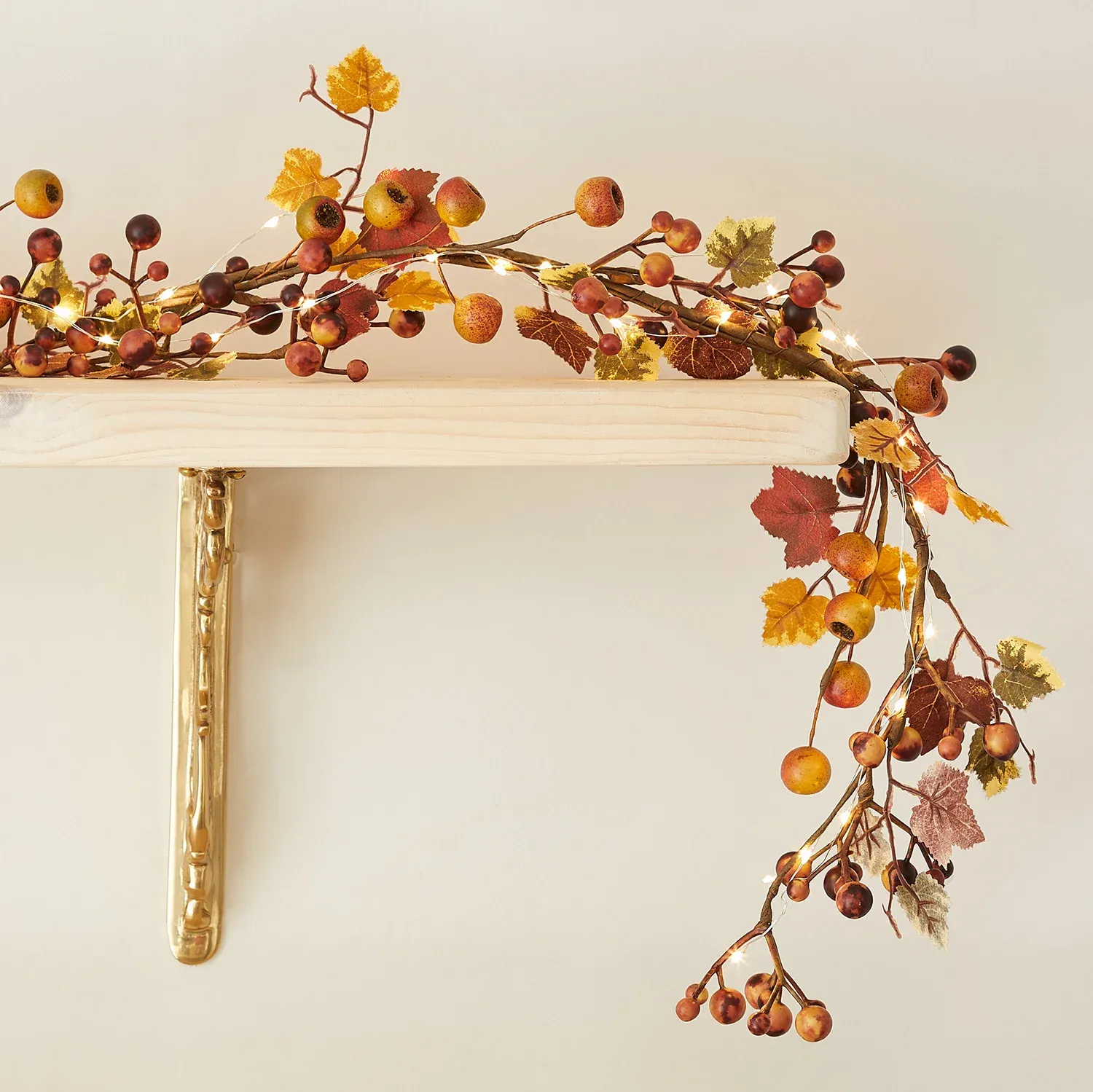 Cette ravissante guirlande annonce l’arrivée de l’automne à la maison. Agrémentée de différentes baies et de feuilles artificielles, notre guirlande minimaliste invite la nature chez vous en cette saison. || Elle s’accompagne d’une guirlande micro LED, qui peut s’entortiller facilement, pour un éclairage chaleureux et doux tous les soirs. Mesurant 1,50 m de long, notre guirlande a la taille idéale pour être posée sur un manteau de cheminée ou comme chemin de table au sein d’une déco d’automne, pour les grandes occasions ou le bonheur de tous les jours ! Insérez simplement les piles, programmez la minuterie et attendez patiemment le soir pour la voir briller de mille feux !