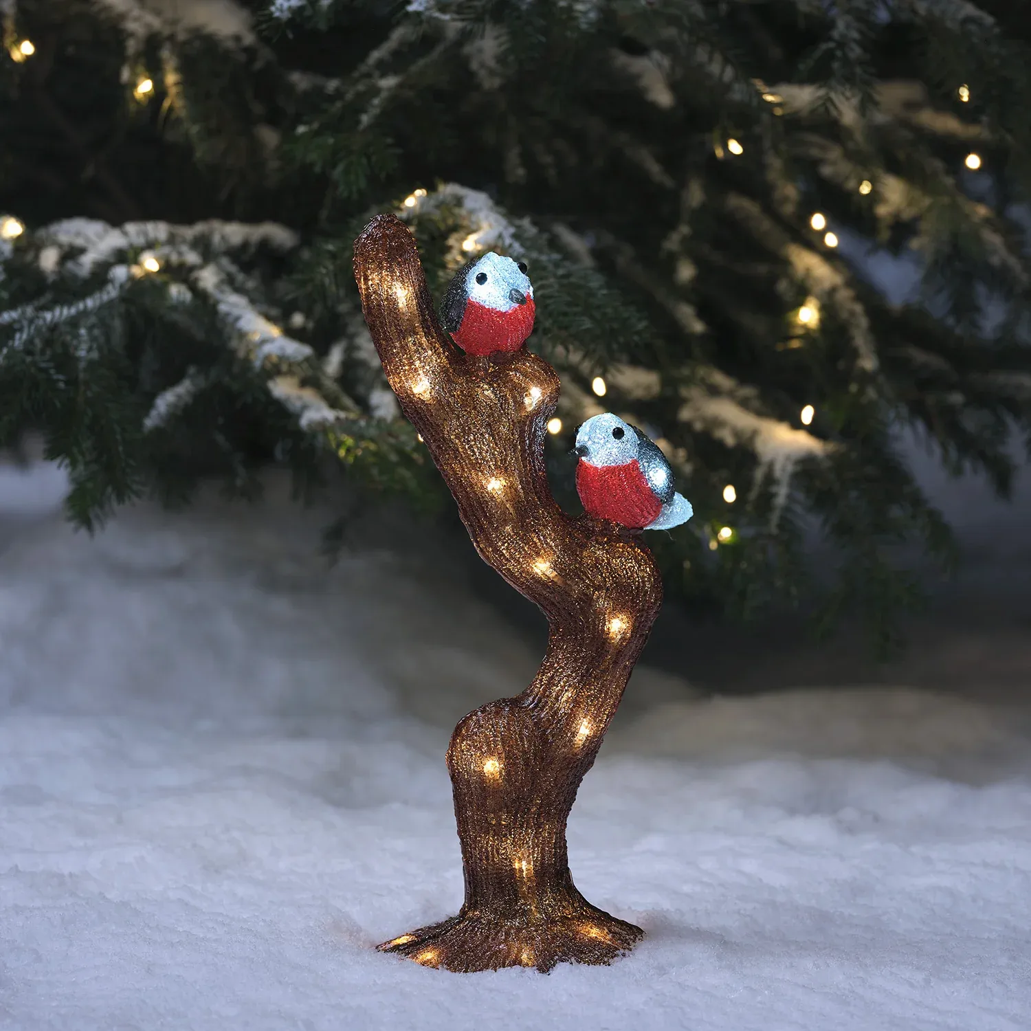 Transformez votre jardin en un véritable conte hivernal grâce à notre superbe figurine lumineuse de Noël en acrylique. Deux rouges-gorges gracieusement perchés sur une branche brune apportent la sérénité de l’hiver directement chez vous. Équipée de 30 LED blanches et d’un câble de 50 cm, cette charmante figurine fonctionne avec 3 piles AA (non incluses). Activez simplement la minuterie de 6 heures pour qu’elle s’allume automatiquement chaque soir à la même heure, illuminant ainsi vos espaces d’une lueur chaleureuse et festive.